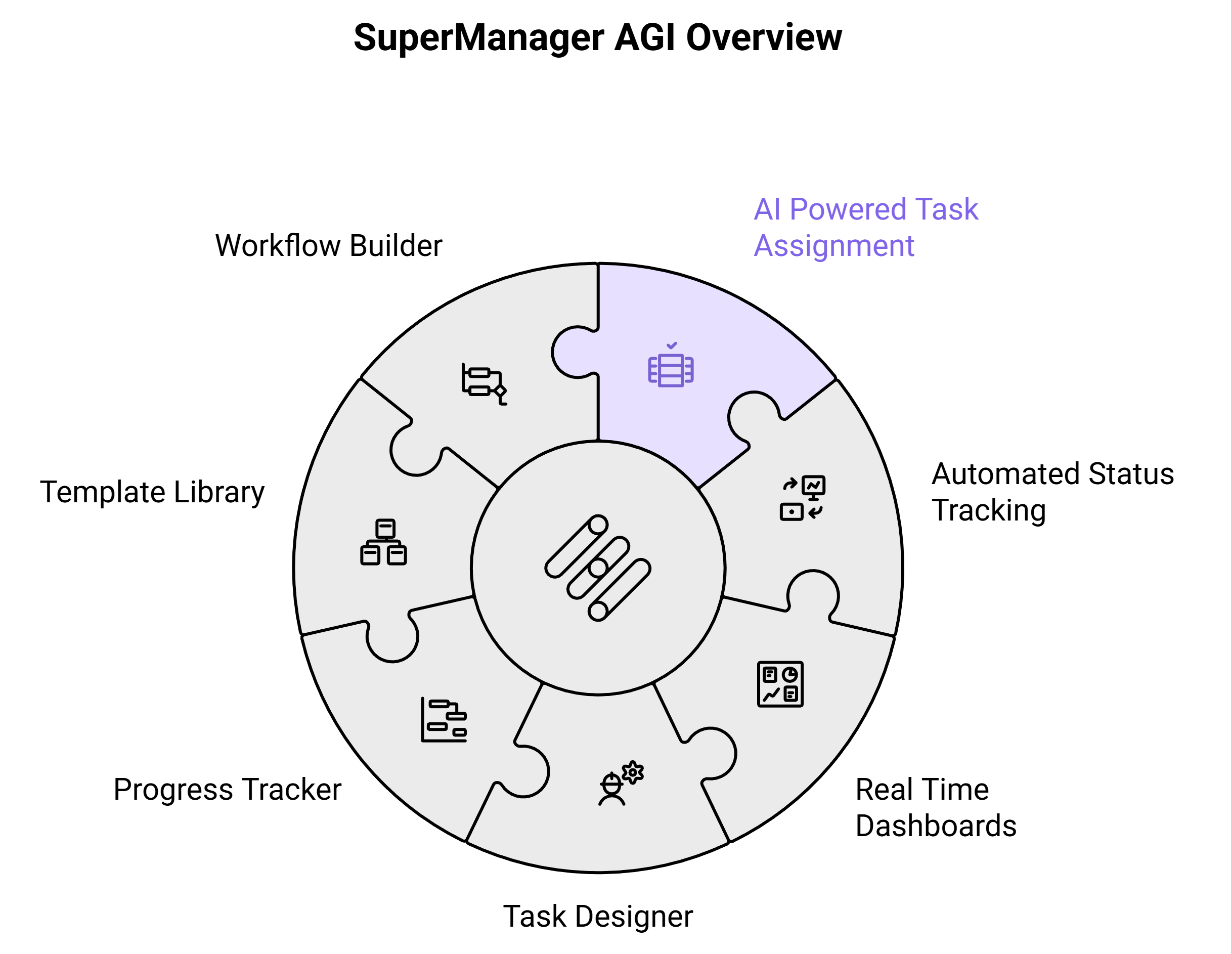 SuperManager AGI Offers Three Core Capabilities to Empower Your Team: AI Powered Task Assignment Intelligently Distributes Work, Automated Status Tracking Keeps Projects on Schedule, and Real Time Dashboards Provide Actionable Project Insights.